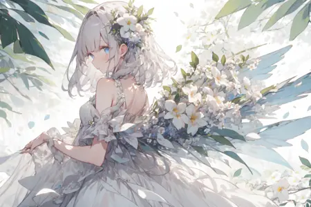 効果を保証するものではありませんが、あまり花が描写されない時は、ネガティブプロンプトに"feathers","wings"などを入れると良いかもしれません。