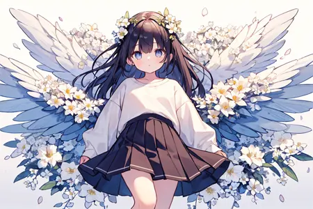 花で飾られた翼、もしくは花でできた翼を生成するLoRAです。多くの場合は前者が生成されます。