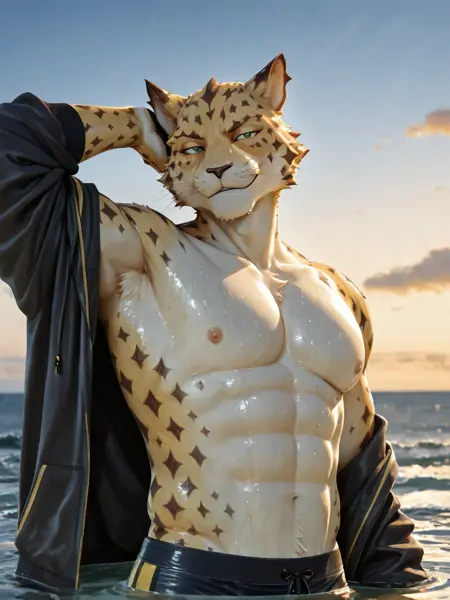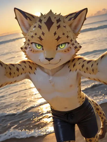 os3tas, anthro, solo, furry male, 1boy, leopard boy, green eyes, yellow fur,