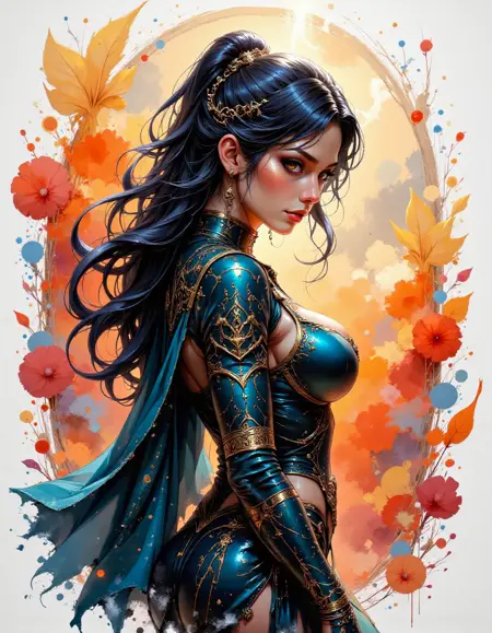 「ink splash」「watercolor background」「soft brush」などのトークンを追加して、効果をさらに強調してください。