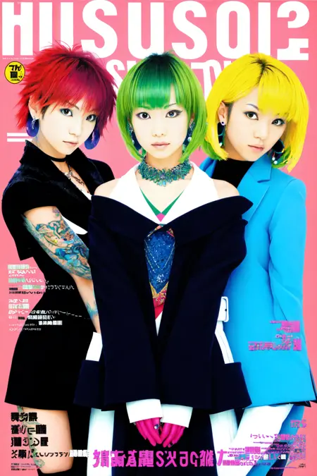 Nihon Music Magazine Styleは、00年代および90年代の音楽雑誌をベースにしたLORAのコンセプト/スタイルです。そのデータの一部はインターネットから収集し、一部は私たち自身が保有していたものです。SHOXXはその主要な雑誌の一つです。このスタイルは、多数の異なる日本の雑誌の表紙と、いくつかの非雑誌のカバーを組み合わせたもので、雑誌の内側だけでなく、私たちが所有する写真集の内容まで撮影しました。