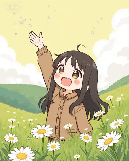 扁平可爱Q版少女(A flat, cute and Q-style girl)