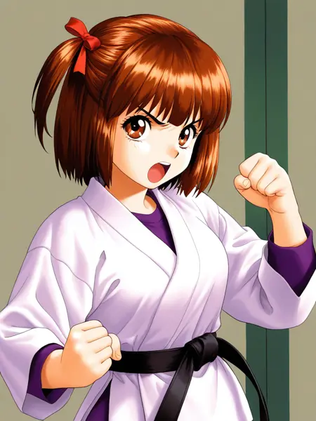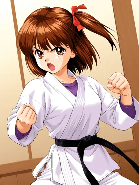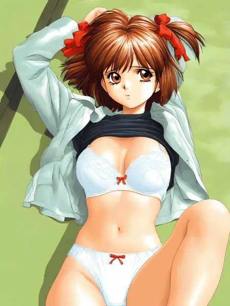 sugata_chinatsu, 1girl, solo, medium breasts, brown hair, short hair, brown eyes, red ribbon, one side up,