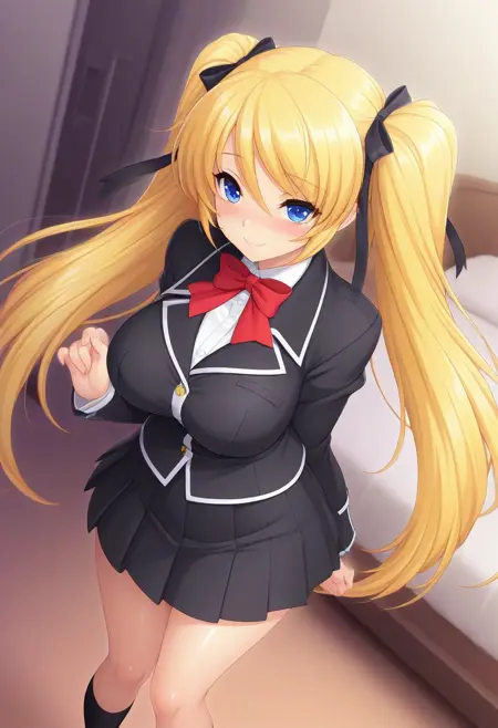 推奨プロンプト:Akari Kamizono, blue eyes, blonde hair, long hair, twintails, hair ribbon,