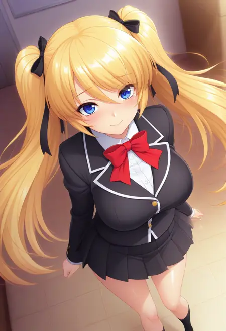 Recommend Prompt:Akari Kamizono, blue eyes, blonde hair, long hair, twintails, hair ribbon,