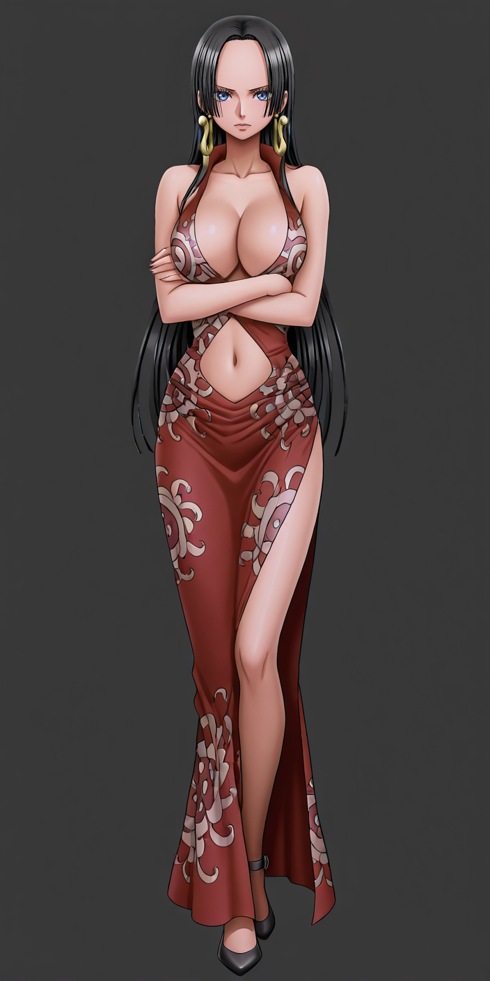『ワンピース』のボア・ハンコックをクリムゾンスタイルで。ここに予定外の第2弾リリースです。彼女は衣装を変更する際、特に服からデザインを削除するときにやや不安定です。ネガティブプロンプトに clothes writing タグを追加することをお勧めします。