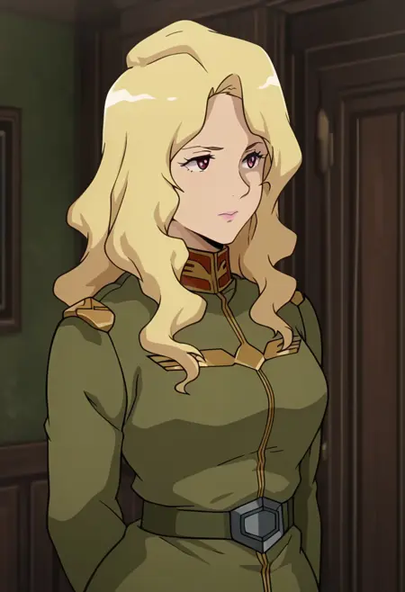軍服、ピンクの唇、ベルト、ズボン、ブーツ