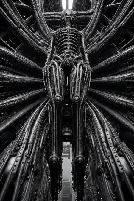 "lora:Biomechanicals_v2:0.7 风格,hnsrdlf 风格,主体描述,精细的生物机械细节"