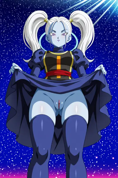 marcarita \(dragon ball\), long hair, twintails, purple eyes, white hair, makeup, colored skin, blue skin,