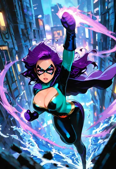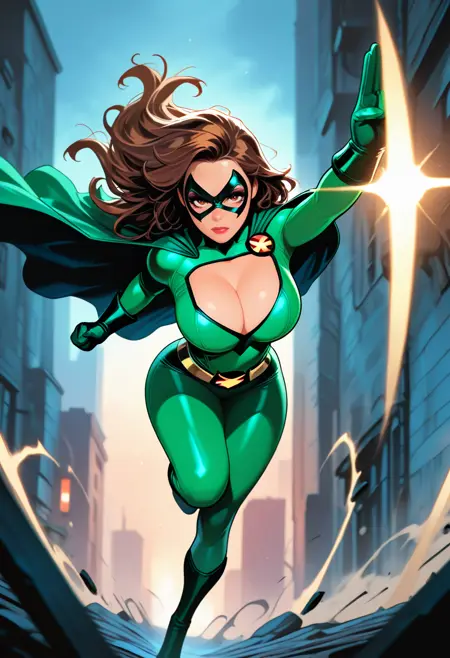 What It Does: Creates bold, energetic superhero illustrations with dramatic lighting, action-packed compositions, and that perfect balance of modern polish and classic comic aesthetics. From solo heroes striking power poses to epic team shots, this LoRA delivers consistent superhero goodness across different characters, powers, and scenarios.