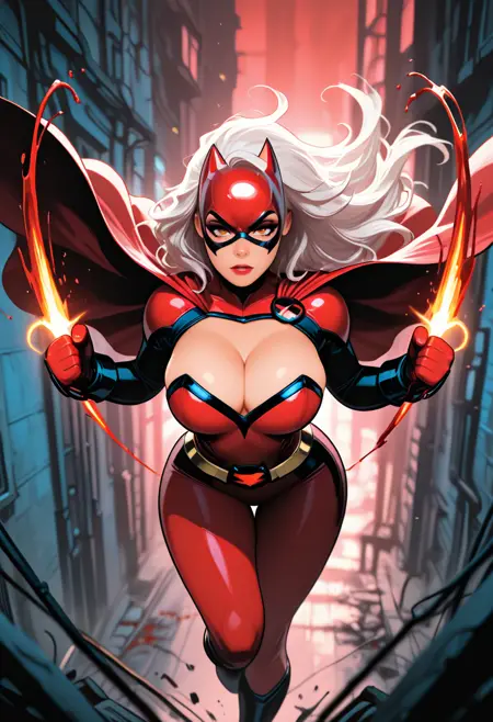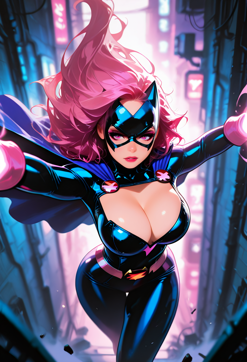• Add "cape," "mask," "superhero pose" to emphasize classic elements