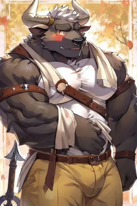 왼팔에 매단 파란색과 흰색 줄무늬 스카프,