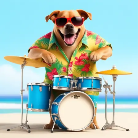 2️⃣ 冬季打鼓的狗cartoon style, pixar3d, solo animal, dog, drum set, winter outfit, beanie, scarf, bright snow light, minimal background, laughing