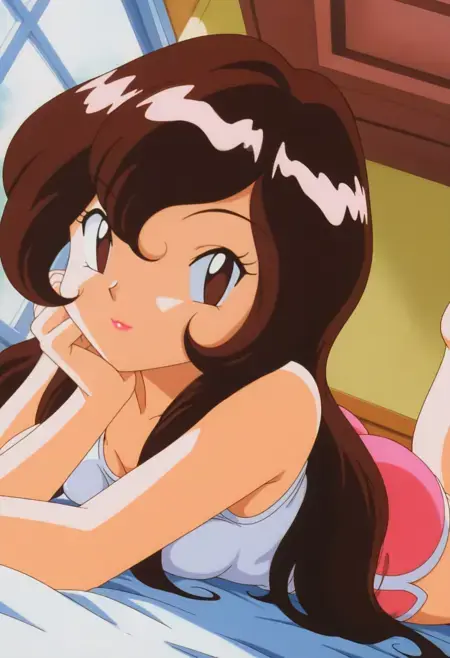 PMGiselle, 1girl, 茶色の髪, 長い髪, 茶色の目, リップストップ, 胸