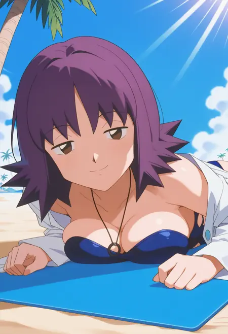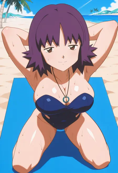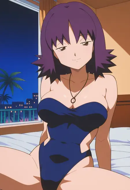 PMProfIvy, 1girl, 紫髪, 逆毛, 短髪, 茶色の目, 胸