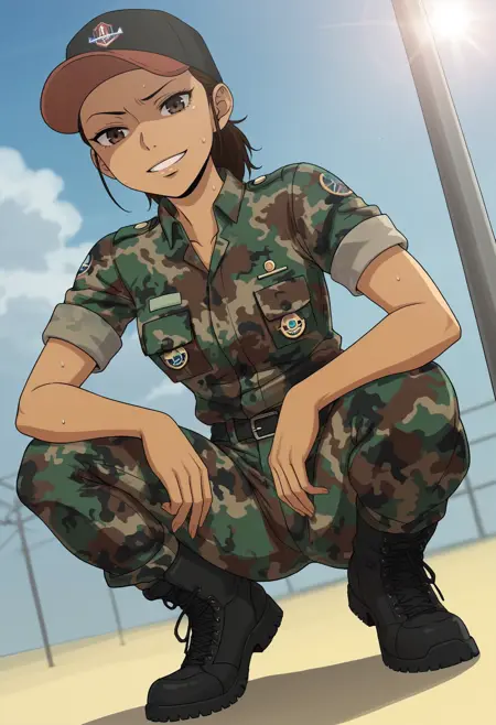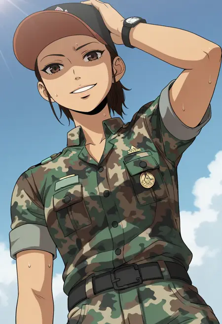 Outfit 2 (Brown Tank Top, Military Uniform):