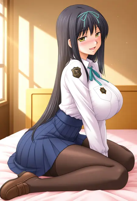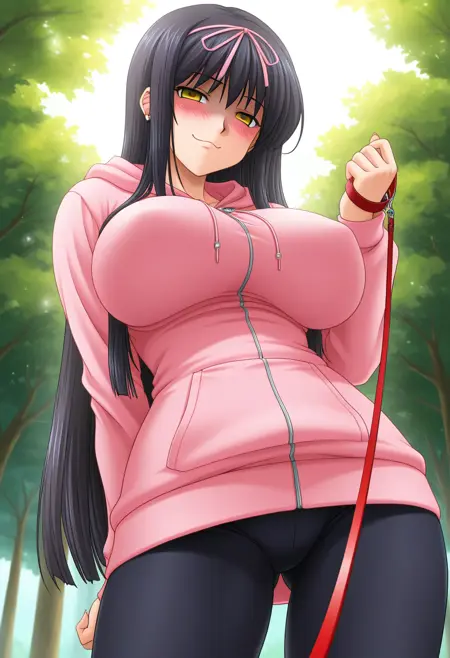 - riroww, 黄色眼睛, 黑色头发, 长发, 极长发, 粉色发带