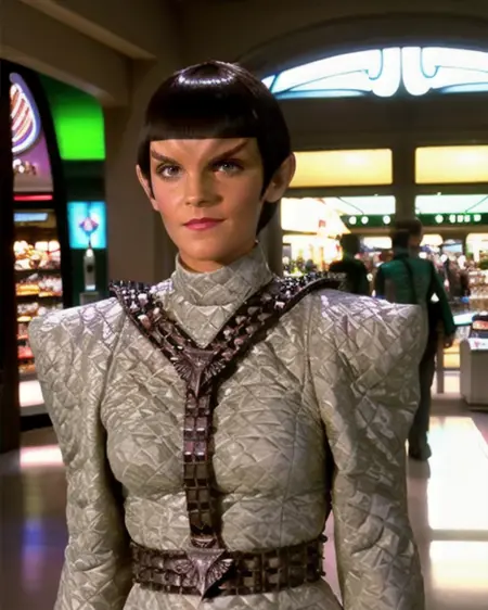 TNG 스타일의 로뮬란 캐릭터를 생성합니다. TNG(DS9에서 하나 추가)의 로뮬란 이미지 44개, 768px 해상도로 2200스텝 학습되었습니다. 프롬프트 코드는 romulan입니다. 도움이 되는 다른 표현: 뾰족한 귀, [밝은 | 중간 | 톤 | 어두운] 올리브 피부, 이마의 V자형 눈썹돌기, [직선 | V자] 앞머리가 있는 단발, 로뮬란 복장을 착용, 벨트형 하네스 착용.