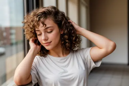Prompt: adujsting hair