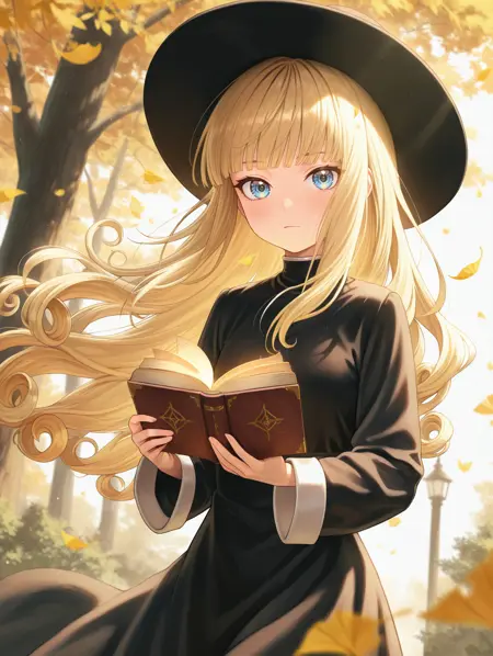 タグ(衣装):黒い帽子、黒いドレス、白いパンティーストッキング、黒い靴