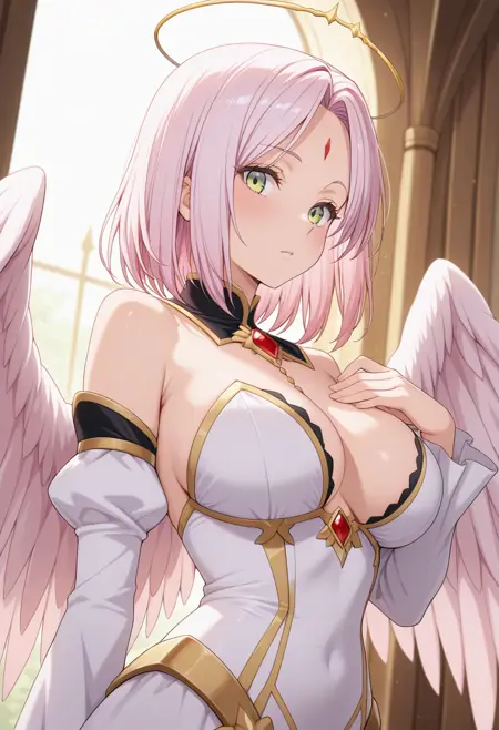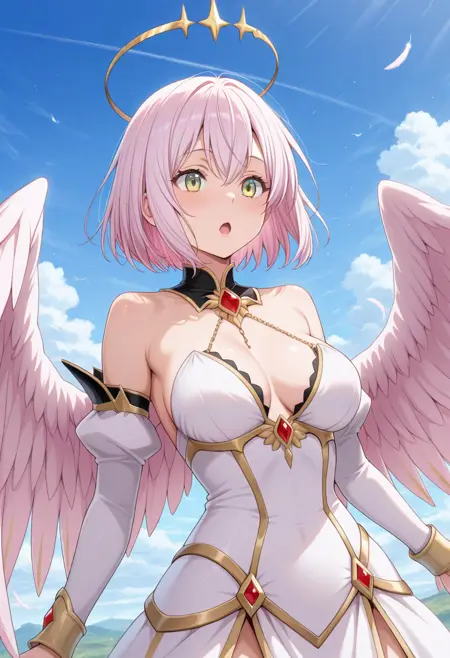 触发词:frey (tensura),翅膀,羽毛翅膀,天使翅膀,粉发,绿眼