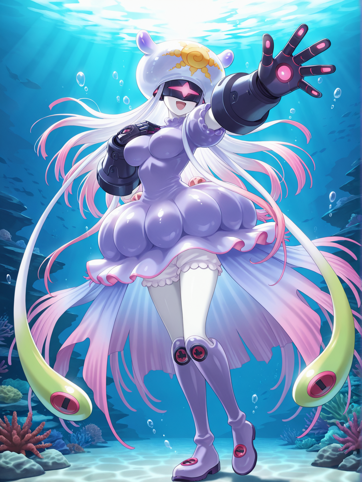 태그(캐릭터): 테티스몬, 흰 피부, 해파리 소녀, 촉수 모양 머리카락,