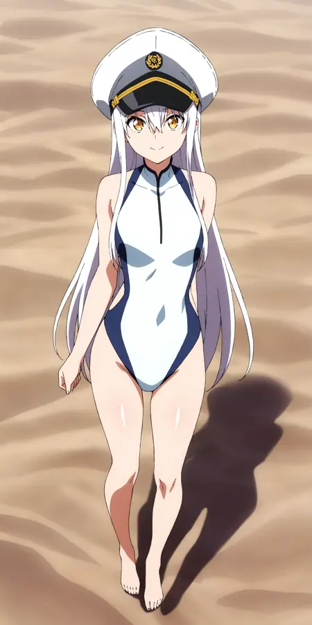 long hair, yellow eyes, brown eyes,hair between eyes, white hair, hat, peaked cap, hat, peaked cap