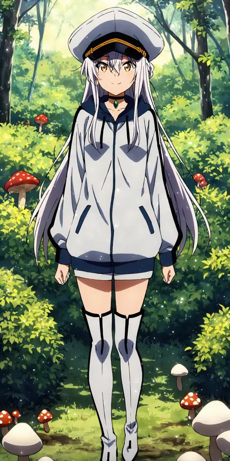 thighhighs, jacket, boots, choker, hood, white thigh highs, black ribbon, hoodie, thigh boots, white footwear