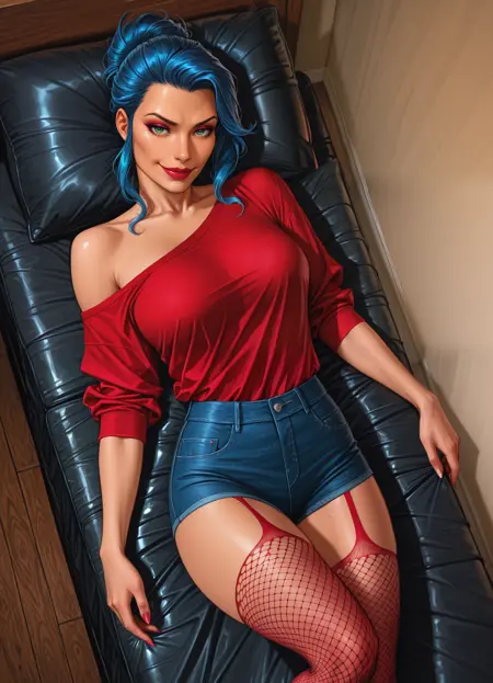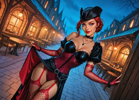 一个用于一体式服装的Lora,该服装集成了丝袜和吊袜带。关键词包括鱼网、破损和蕾丝边。
