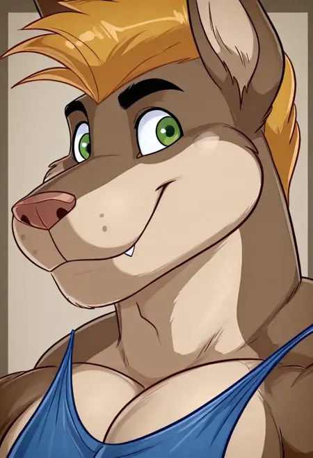 prompt: nestor, dog, anthro, green eyes, yellow hair