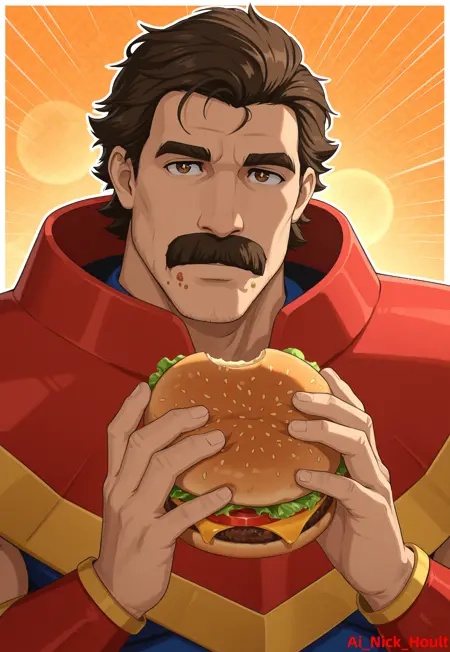 Phenomaman, 1boy, muscular, brown_hair, mustache, brown eyes,