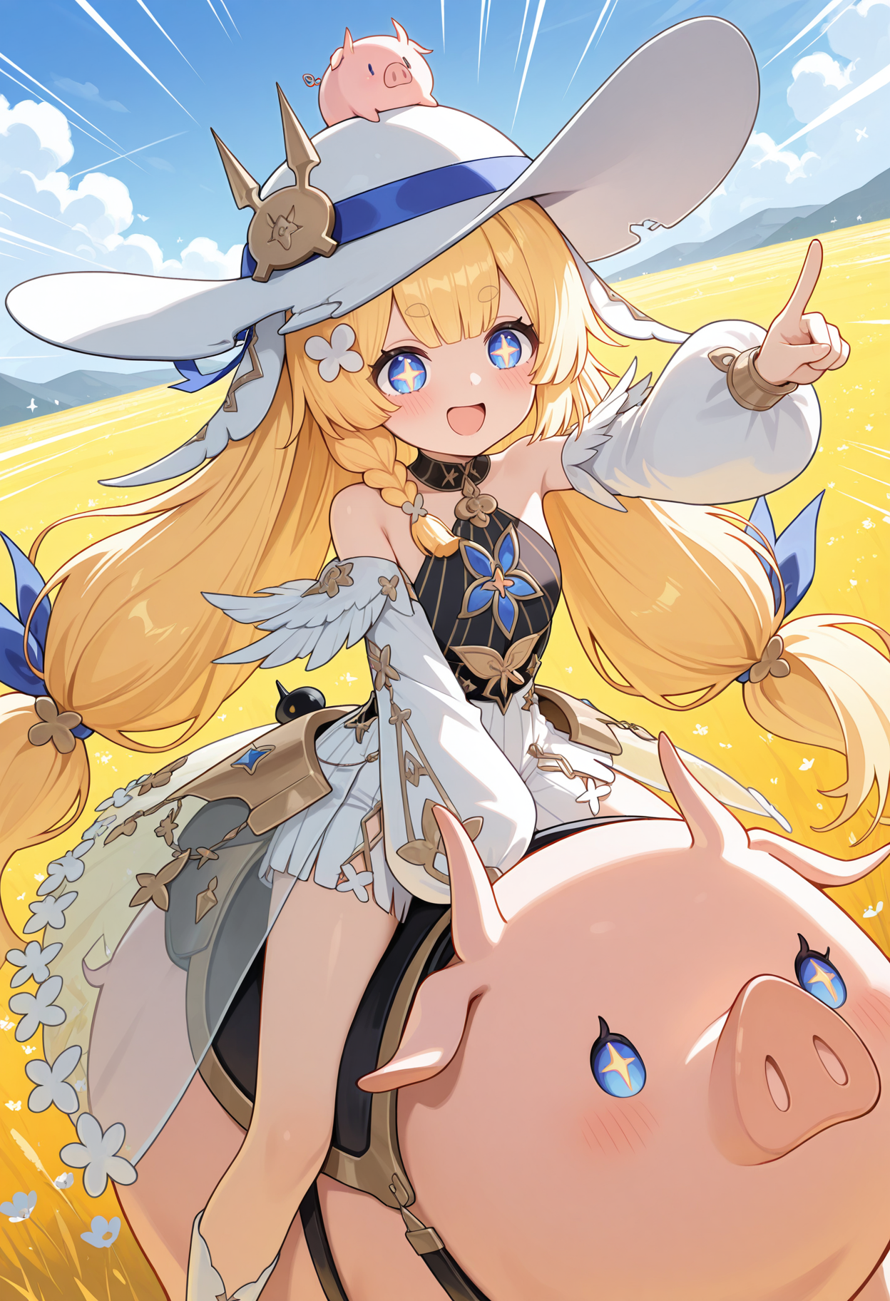 Character LoRA for Truffle and her steemed pig Filbert, from Duet Night Abyss mobage game. Supposedly WuWa Phoebe's sister design since the game developer has some relationship with Kuro Games.