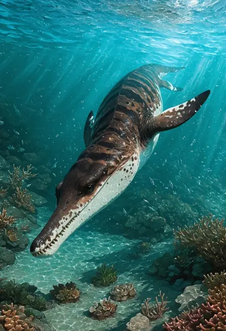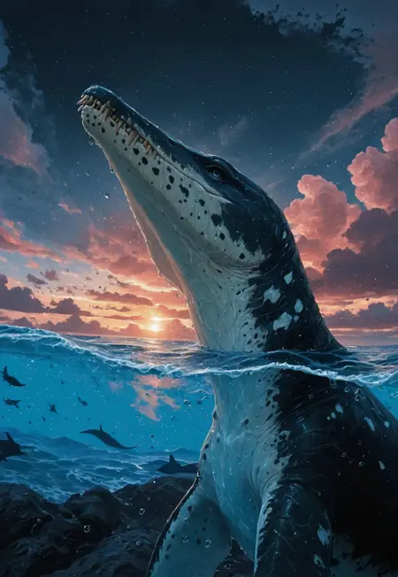 플리오사우리dae 가족의 구성원들은 크고 튼튼한 몸체, 거대한 머리, 그리고 압착력을 발휘할 수 있는 강력한 턱을 특징으로 하며, 진정한 바다의 몬스터였다. 추정에 따르면 길이는 7~10미터였으며, 크로노사우루스 같은 일부 종은 13미터를 넘었고, 두개골은 거의 2.5미터에 달하며, 물고기, 이치토사우르스, 기타 해양 파충류와 같은 미끄러운 먹이를 잡아내기 위해 길고 원추형의 이빨로 가득 차 있었다. 이들은 유럽에서 남아메리카에 이르기까지 전 세계의 중생대 해양을 지배했다.