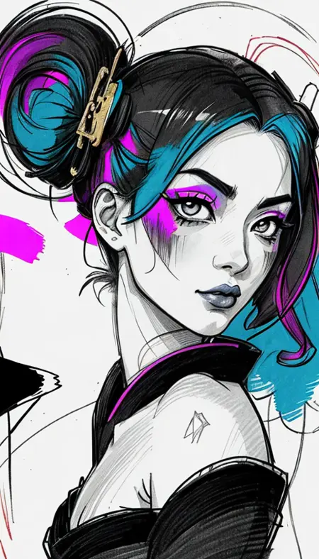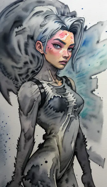 Example: (harmonious combination styles: watercolor, charcoal, painterly abstraction, vivid strokes:1.25)