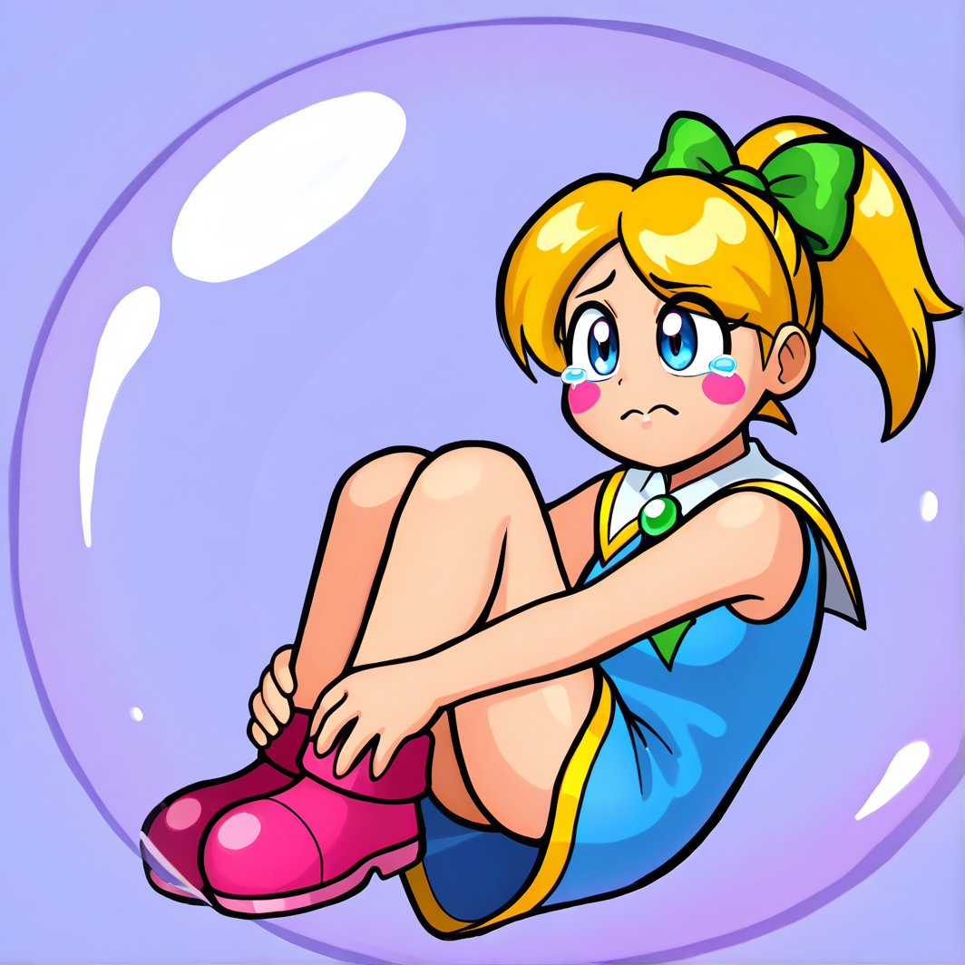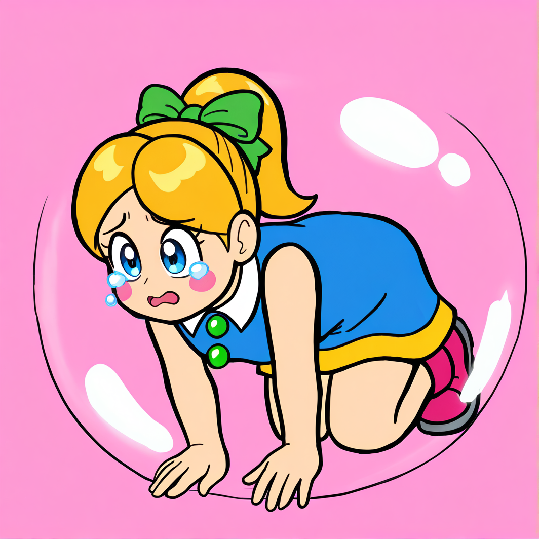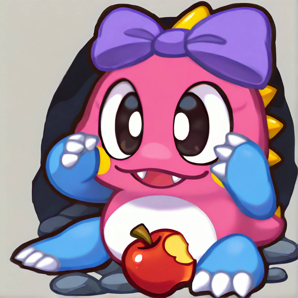 Well since there are absolutely zero Bubble Bobble characters on this site I decided to add a few. It was a lot of work! I had to edit sprites and draw concept art to even make this work. It's Patty, Betty, Peb and Pab from Bubble Bobble Symphony. I also included Judy who had ZERO concept art. I had to draw her based on her tiny NES sprite!