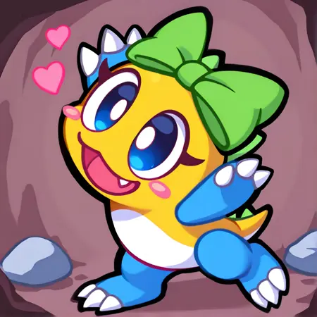 이 사이트에는 버블버블 캐릭터가 완전히 없기 때문에 몇 명을 추가하기로 결정했습니다. 정말 많은 작업이었어요! 이 작업을 위해 스프라이트를 편집하고 콘셉트 아트를 그려야 했습니다. 이 캐릭터들은 버블버블 심포니의 패티, 베티, 페브, 파브입니다. 또한 콘셉트 아트가 전혀 없던 주디도 포함했습니다. 저는 그녀의 작은 NES 스프라이트를 바탕으로 그녀를 그려야 했습니다!