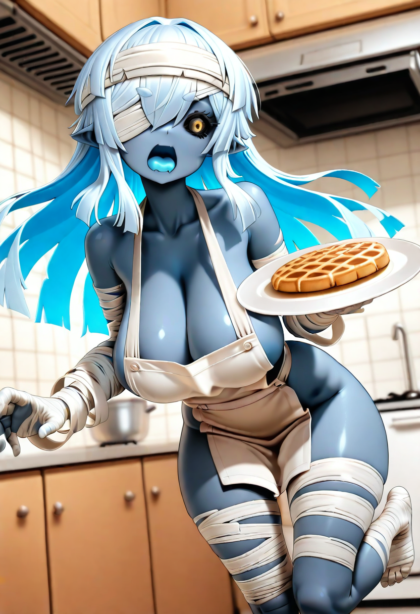 | 학습된 단어 | SSGRISA, bandaged head, blue hair,long hair,sidelocks, black sclera, yellow eye, bandage over one eye, open mouth, blue tongue, ribbon, large breasts,blue skin, bandaged neck, revealing clothes, bandaged arms, bandaged hands, stomach, bandaged leg, bandaged foot,복사됨! |