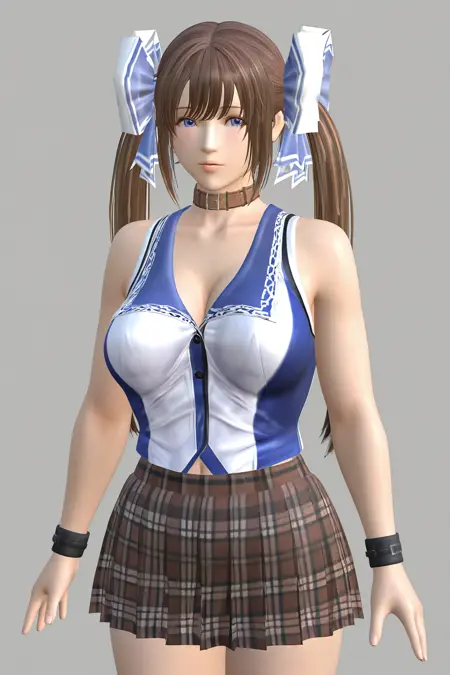 의상 프롬프트 1: Mysterious Girl A's Outifit, plaid skirt, brown skirt,