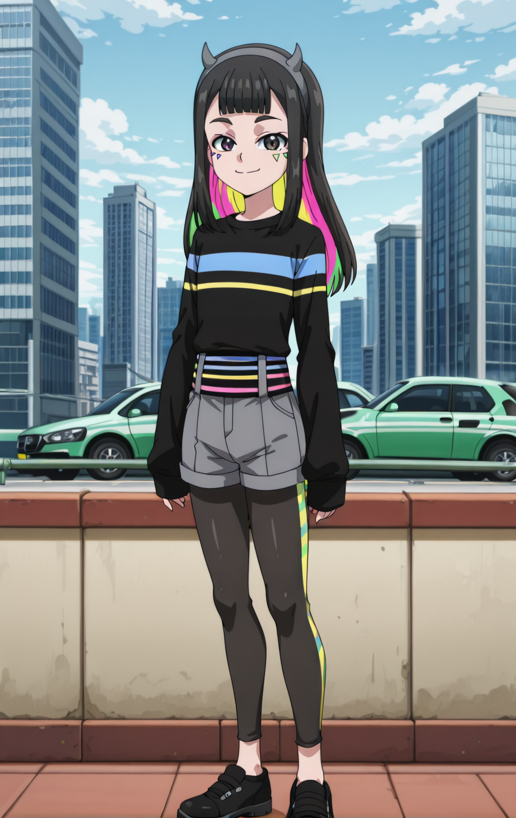 Multi Nanairo is a character from Beyblade X. True to the name and theme, Multi is a truly multifaceted character, reflected not only in her vibrant, multicolored hair but also in her diverse wardrobe, which showcases distinct sides of her personality. The two main ones, “Cute Mode” and “Cool Mode,” highlight the contrast that makes the character so engaging. I don’t think I’ve been this interested in a Beyblade character since Madoka Amano from Metal Fight Beyblade.