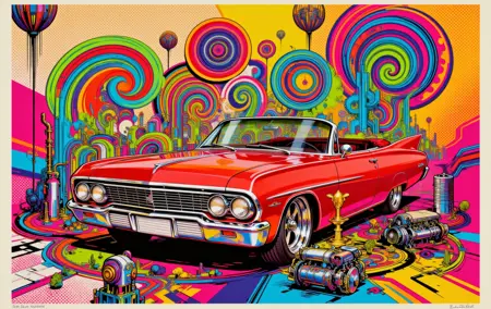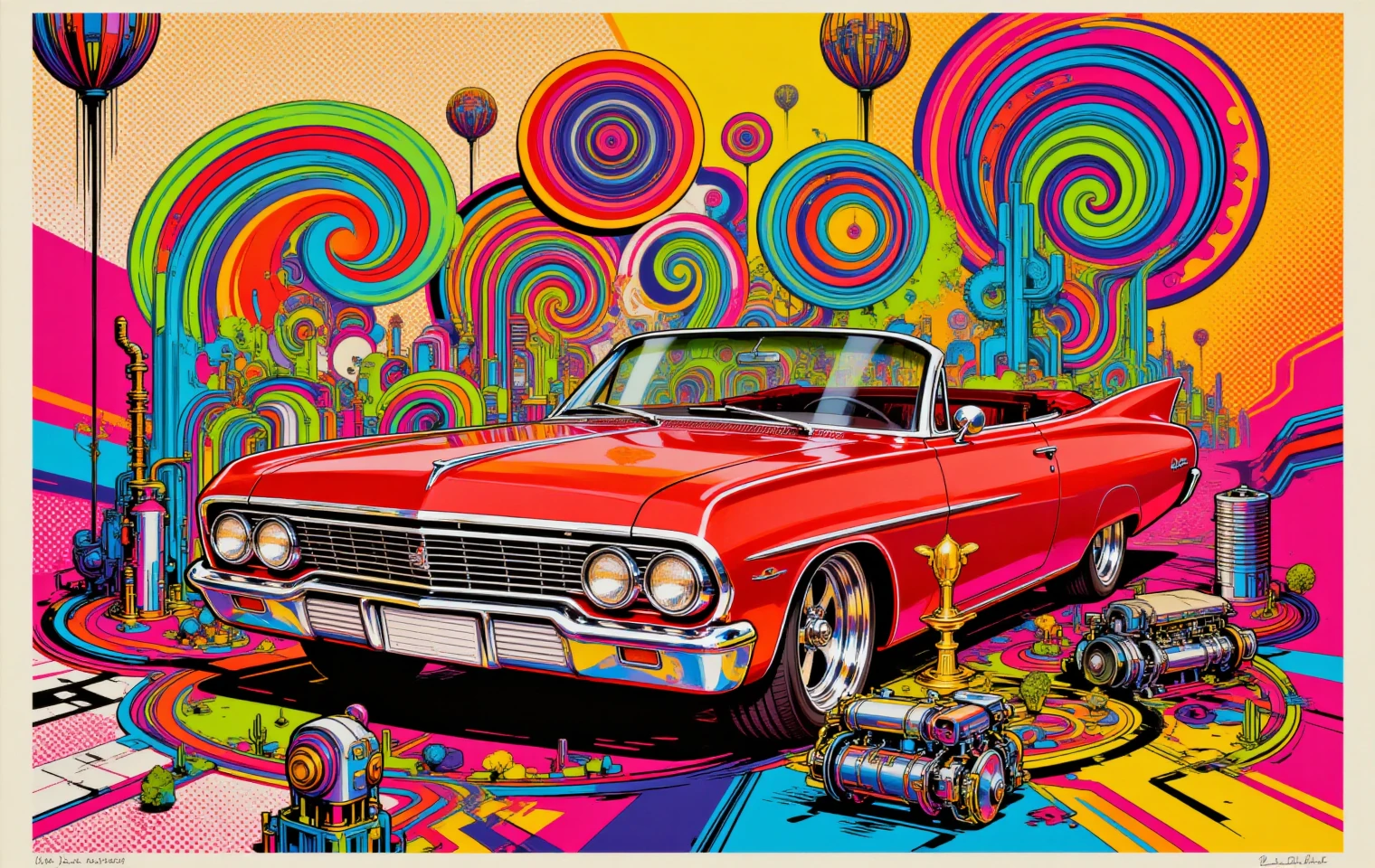 'robert_williams, automotive art in the style of robert williams. ambient occlusion, best quality, masterpiece.'