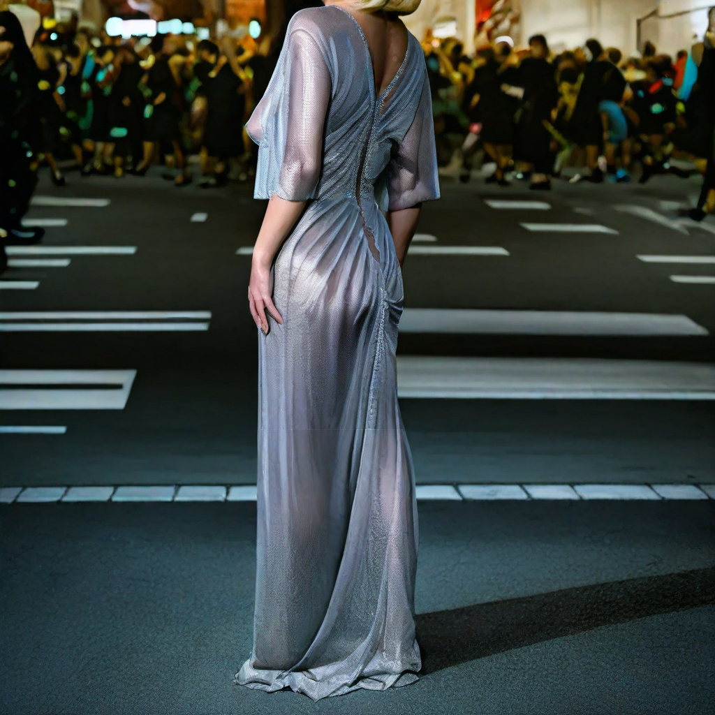 Sheer Metallic Dress Christian Cowan with Elias Matso SS26 Twisted Crystal Mesh Tee