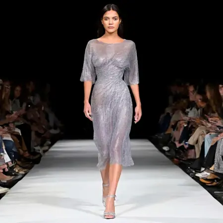 Sheer Metallic Dress Christian Cowan with Elias Matso SS26 Twisted Crystal Mesh Tee