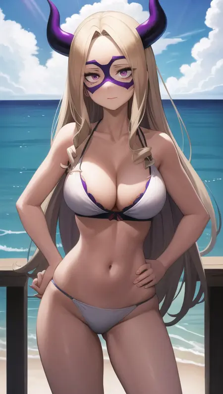 Sometimes it's hard to get her Mask correct.Useful Tags: mount lady \(my hero academia\), bodysuit, domino mask, purple eyes, purple horns,