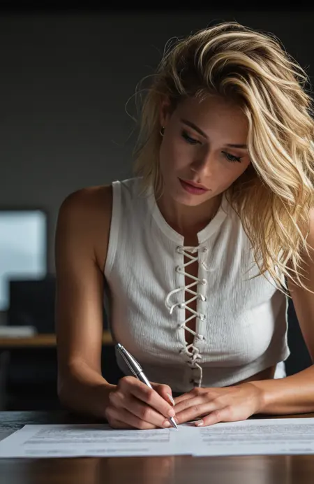 她签的是什么(放弃)?她的手机套餐?她的尊严?她的长子?你来决定。