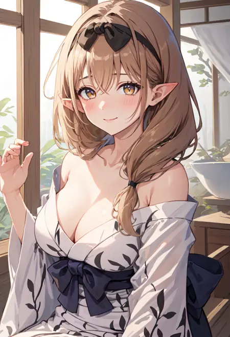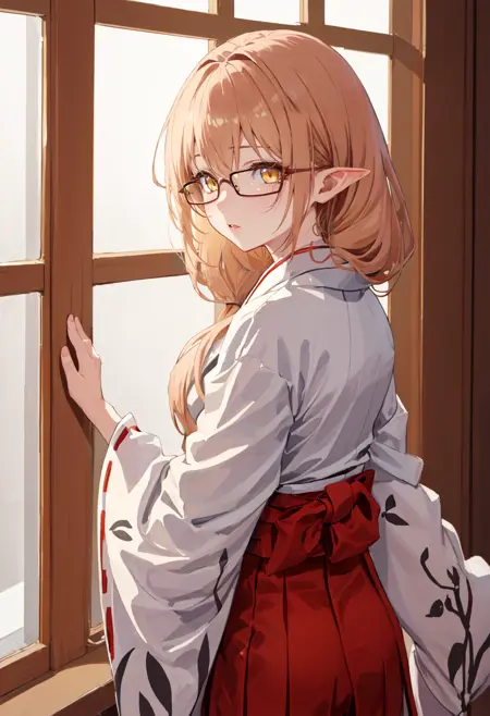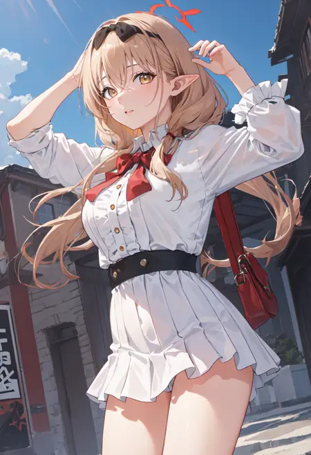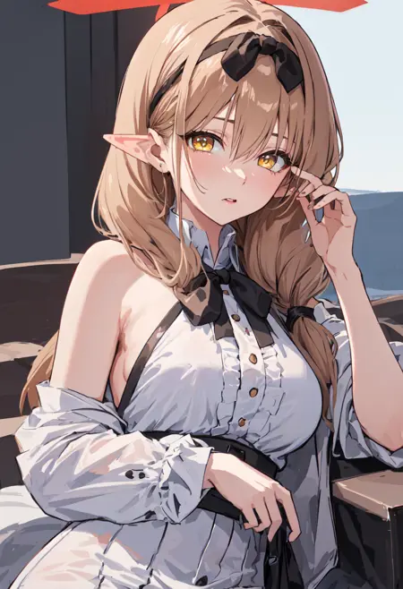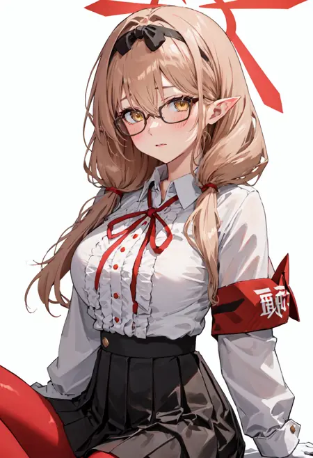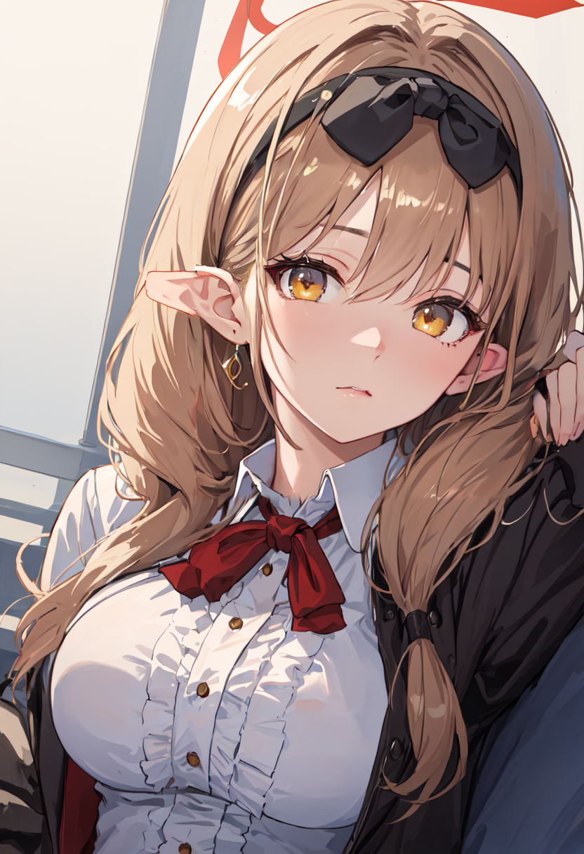 - 정제된 캐릭터 태그는 긴 머리카락, 뾰족한 귀, 가슴, 갈색 머리카락, 하늘, 큰 가슴, 안경, 헤어밴드, 황색 눈, 검은 프레임 안경, 갈색 눈, 두 갈래 머리입니다. 캐릭터의 핵심 특징(예: 머리색)이 안정적이지 않을 때 이 태그를 프롬프트에 추가할 수 있습니다.