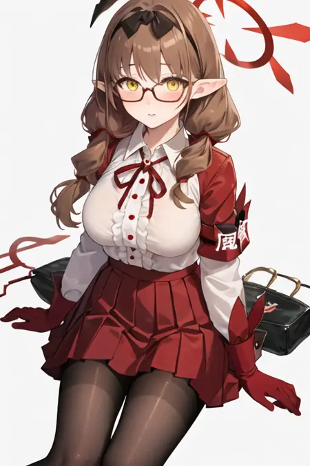 The trigger word is chinatsu_bluearchive, and the pruned tags are long_hair, pointy_ears, breasts, brown_hair, halo, large_breasts, glasses, hairband, yellow_eyes, black-framed_eyewear, brown_eyes, twintails. When some features (e.g. hair color) are not so stable at some times, you can add these them into your prompt.