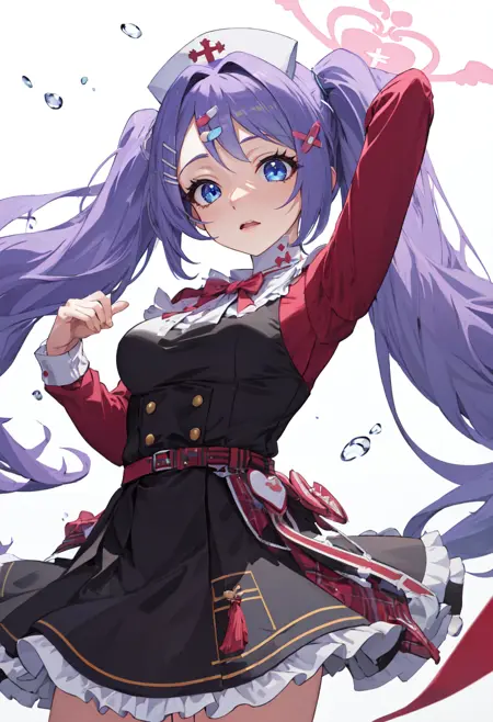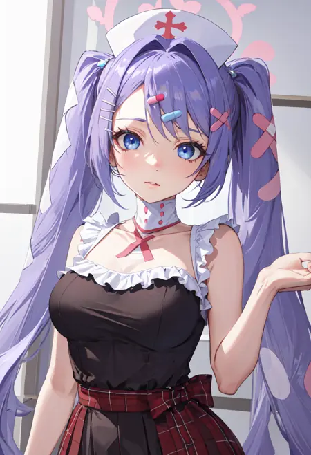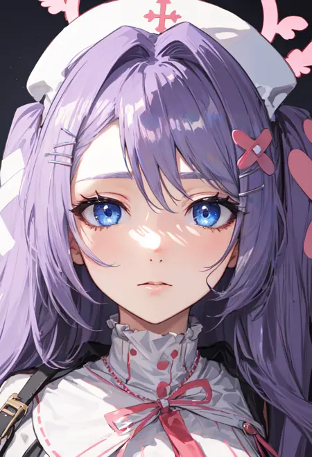 트리거 단어는 hanae_bluearchive이며, 축소된 태그는 purple_hair, long_hair, hair_ornament, breasts, twintails, halo, blue_eyes, hairclip, large_breasts, fang, hat, skin_fang, very_long_hair, nurse_cap, bandaid_hair_ornament, heart_hair_ornament입니다. 어떤 특징(예: 머리색)이 일시적으로 불안정할 때, 이 태그들을 프롬프트에 추가할 수 있습니다.