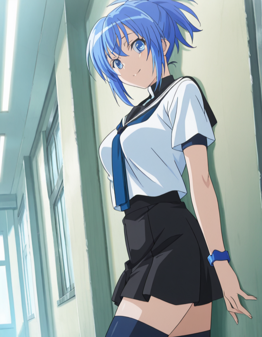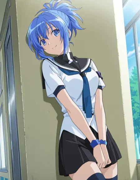 在女性形态下,夏露兼具力量与魅力。她有着短而蓬松的蓝色头发、明亮的深蓝眼睛,以及纤细匀称的身材,凸显出她的战斗素养。她的装扮多样,从日常校服、运动装,到迷人的泳装和俏皮的服装,常以标志性的蓝色腕带作为点缀,象征其Kämpfer身份。