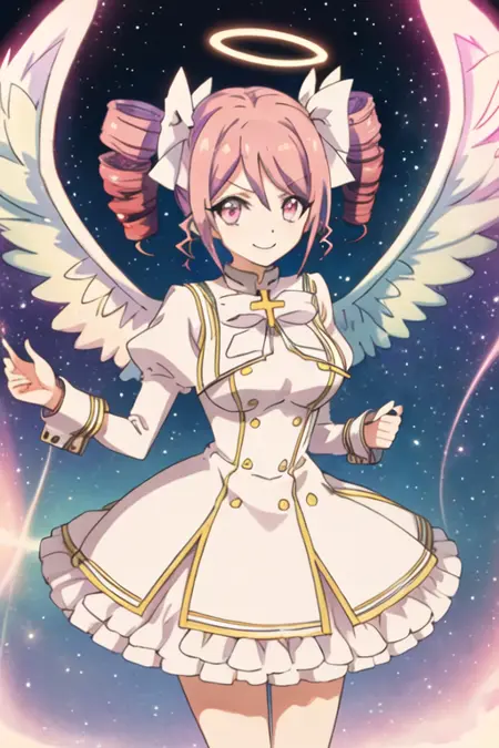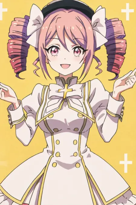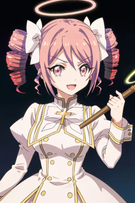 트리거 단어는 pino_jashinchandropkick이며, 권장 태그는 best quality, masterpiece, highres, solo, {pino_jashinchandropkick:1.15}, drill_hair, pink_hair, twin_drills, ribbon, twintails, hair_ribbon, cross, pink_eyes입니다.