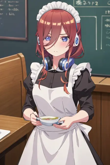 트리거 단어는 nakano_miku_gotoubunnohanayome이며, 권장 태그는 best quality, masterpiece, highres, solo, {nakano_miku_gotoubunnohanayome:1.15}, long_hair, brown_hair, bangs, hair_between_eyes, blue_eyes, headphones_around_neck, headphones, blush, closed_mouth, shiny_hair입니다.